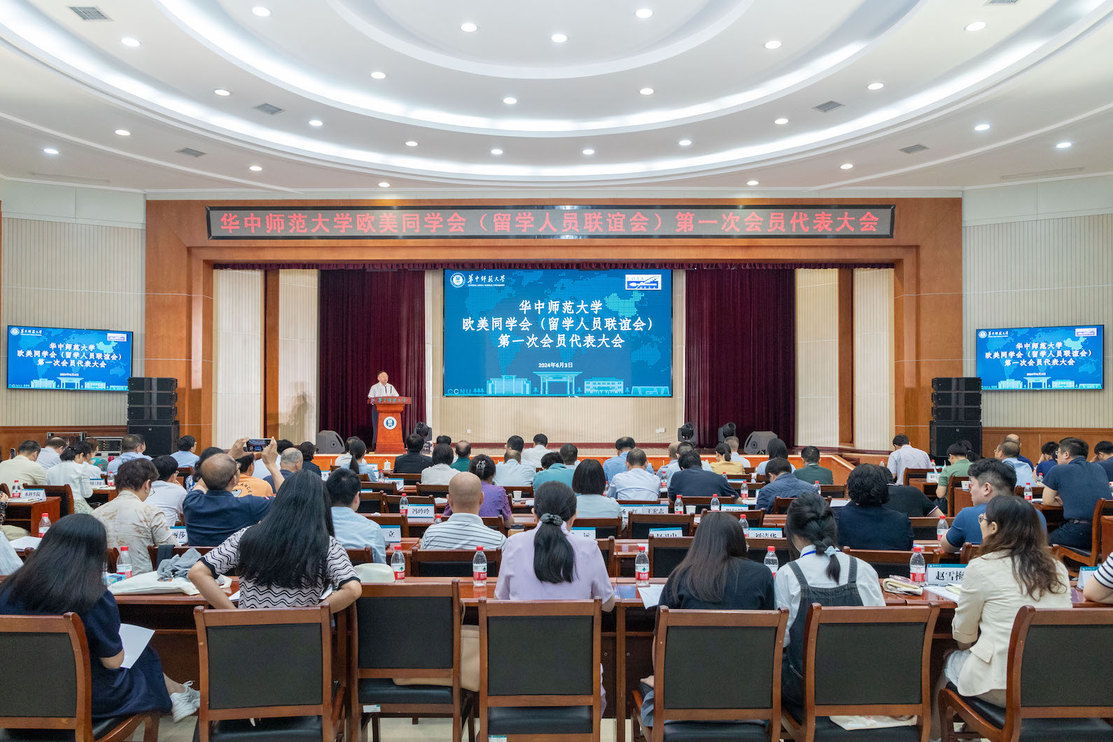 华大在线讯(通讯员 邓果 记者 范彦芳 实习记者 刘翠蝶)6月3日,雷速体育网页版登录入口欧美同学会(留学人员联谊会)(以下简称“校欧美同学会”)第一次会员代表大会在科学会堂一楼报告厅举行。湖北省委统战部副部长张勇强、湖北欧美同学会(湖北留学人员联合会)专职副会长刘来、校党委书记夏立新、校长彭双阶、校党委副书记查道林等出席。我校统一战线工作领导小组成员单位主要负责人、学校各分党委(党总支)主要负责人、各民主党派和统战团体负责人、校欧美同学会第一次会员代表大会代表参加大会。