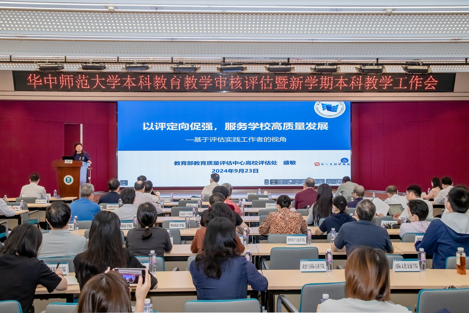 华大在线讯(记者 郝日虹)9月23日,我校本科教育教学审核评估暨新学期本科教学工作会在文科楼一楼报告厅举行。校长彭双阶出席并讲话。学校审核评估办公室负责人,审核评估各专项工作组负责人、工作专班成员,本科教学督导员,各学院(部)院长、分管本科教学工作副院长、教学秘书,本科生院班子成员及全体工作人员参会。会议由副校长周鹏程主持。