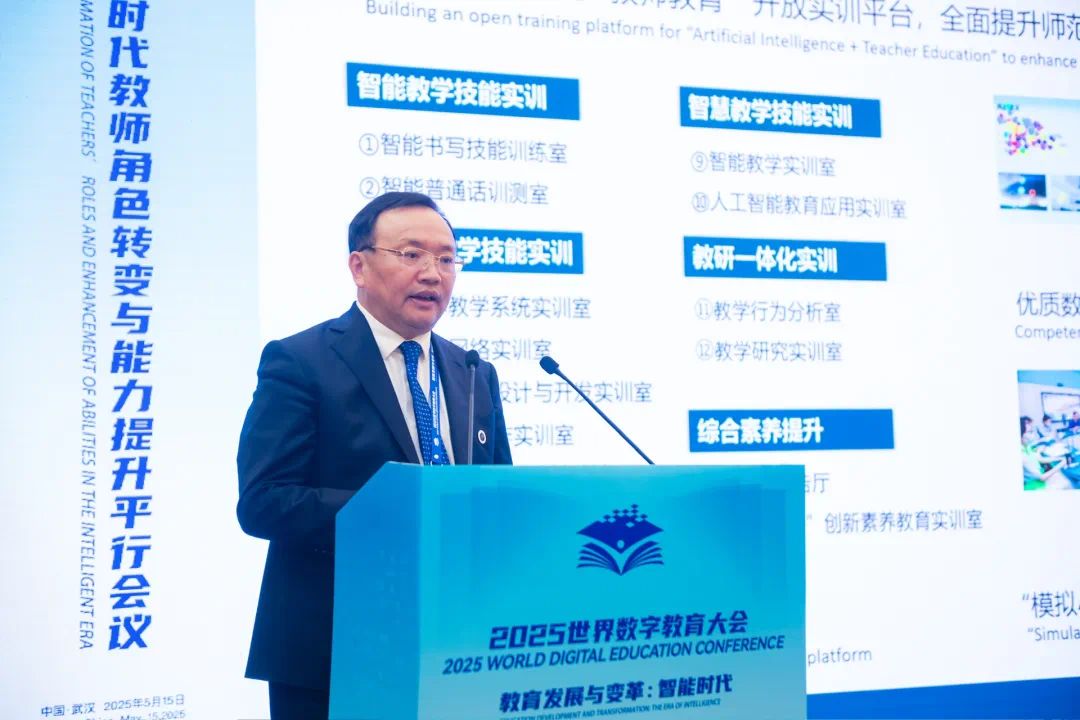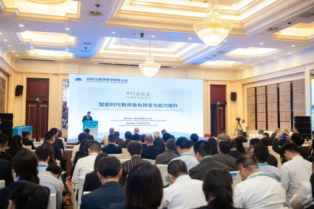华大在线讯(记者 郝日虹)5月15日,2025年世界数字教育大会第五平行会议“智能时代教师角色转变与能力提升”在武汉国际会议中心举行。本次会议由教育部教师工作司指导,雷速体育网页版登录入口承办。来自15个国家和地区的教育部门负责人、教育机构代表、国际组织专家以及教育数字化研究领域的学者150余人参会。会议围绕人工智能时代教师能力培养、人机协同教学实践、数字素养等议题展开讨论,旨在推动全球教育数字化进程中教师发展合作与对话,助力教师角色转变。