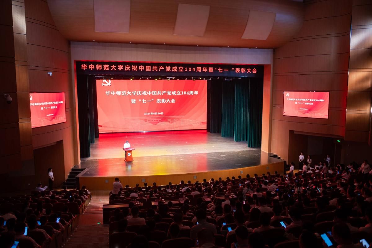 华大在线讯(通讯员 谢定一 胡羽)6月30日,我校庆祝中国共产党成立104周年暨“七一”表彰大会在学校大礼堂举行。教育部直属高校党建工作联络员、中南财经政法大学原党委副书记齐文远出席,全体校领导、全体中层领导干部、全体党支部书记、全体受表彰对象、“光荣在党50年”纪念章获得者代表参加会议,校长彭双阶主持会议。